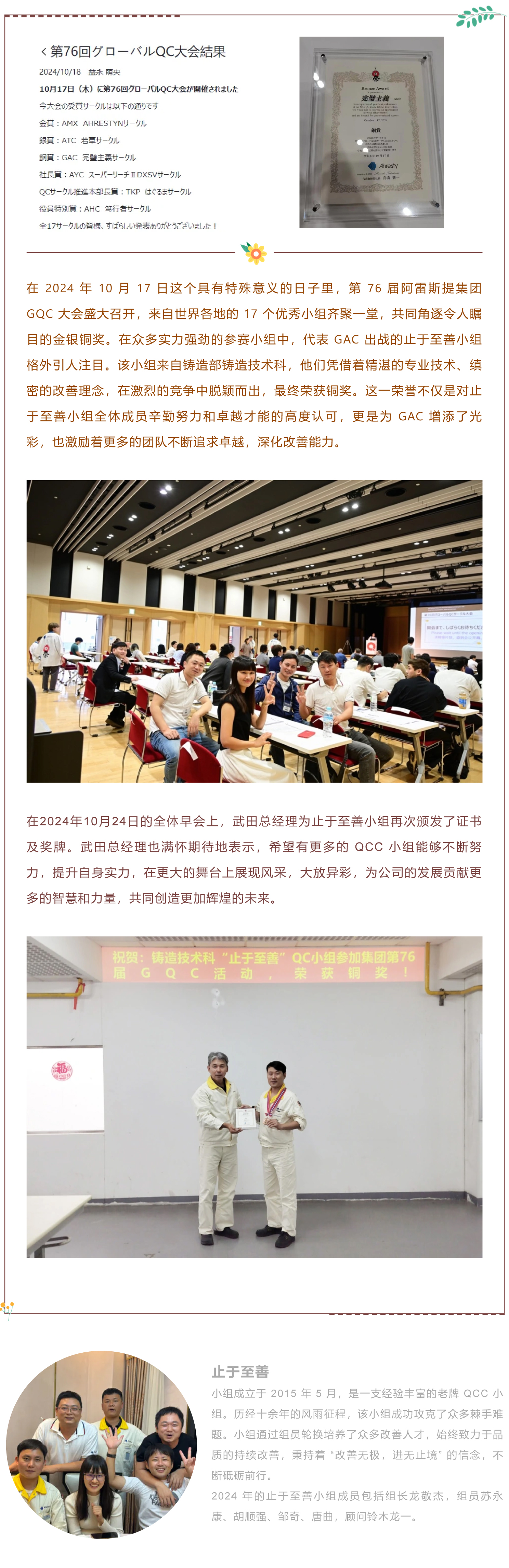 GAC小組榮獲集團(tuán)GQC大賽銅獎